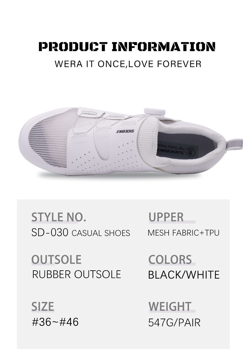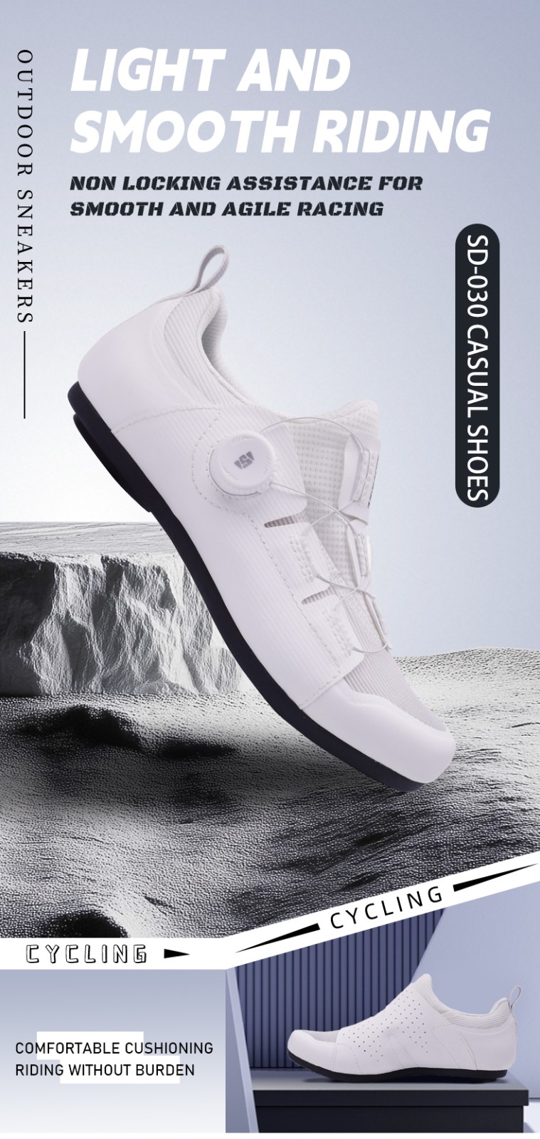 The latest unlocked casual shoes for track riders on the road SD030 are made of breathable mesh and TPU on the upper, which is breathable and not stuffy, making cycling more comfortable. It adopts a new customized single screw buckle, with a rubber outsol